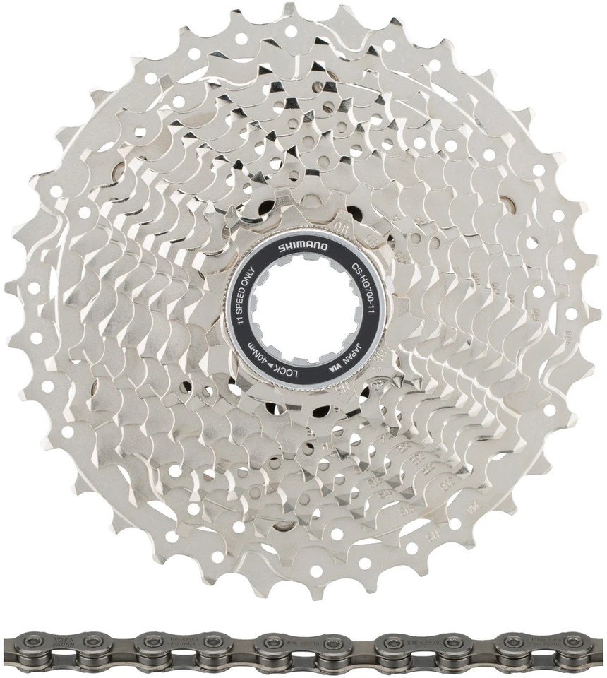1 x Kurbelgarnitur Shimano 105 (FC-R7000)1 x Schaltwerk Shimano 105 (RD-R7000)1 x Umwerfer Shimano 105 (FD-R7000)1 Paar Schalt-/Bremsgriffe Shimano 105 STI 2-/11-fach (ST-R7000)1 Paar Felgenbremsen Shimano 105 (BR-R7000)1 x Kassette Shimano 105 (CS-R7000) oder CS-HG700-11 (11-34)1 x Kette Shimano 105 / SLX Quick-Link (CN-HG601-11)1 x Kurbelschraube Shimano1 x Außenhülle Shimano OT-RS900 240 mm1 x Endkappe verlängert für Schaltwerk1 x Schaltzug Shimano 1800 mm1 x Schaltzug Shimano 2100 mm2 x Bremszug2 x Bremszugaußenhülle3 x Schaltzugaußenhülle6 x Montage-Gelenkmutter für Felgenbremse2 Paar Bremsbeläge R55C41 x Kassetten-Abschlussring Shimano Stahl1 x Kassetten-Spacer Shimano 1,85 mm (nur bei 11-34)1 x Kettenschloss Shimano SM-CN900-11 Quick-Link