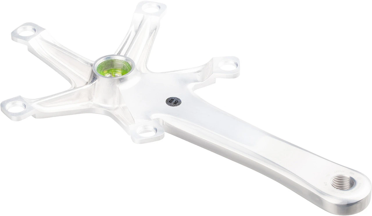 Spezifikationen:Einsatzbereich:BahnKompatibilität:1-fachKettenblattbefestigung:144 mm Lochkreis, 5-ArmTechnische Daten:Serie:Dura-Ace 7700Material Kurbelarme:AluminiumKurbelarmlänge:165,0 mm, 167,5 mm, 170,0 mm, 172,5 mm, 175,0 mmKettenlinie:42,5 mmQ-Faktor:136,3 mmKompatible Gehäusebreite (bei BSA-Innenlager):68 mmInnenlager (empf.):BB-7710 oder BB-7700 Octalink 109,5 mm Achse (nicht im Lieferumfang)Kompatibilität:kompatibel mit 1/2″ x1/8″ und 1/2″ x3/32″ KettenKettenblätter mit 45 bis 55 Zähnen (1/2″ x1/8″ , 1/2″ x3/32″ ) separat erhältlichFeatures:Pedalgewinde BC 9/16″ x 20 tpihohlgeformte Kurbelarme (Hollowtech)Kurbelarme eloxiertKettenblattschrauben aus EdelstahlTechnologien:Octalink