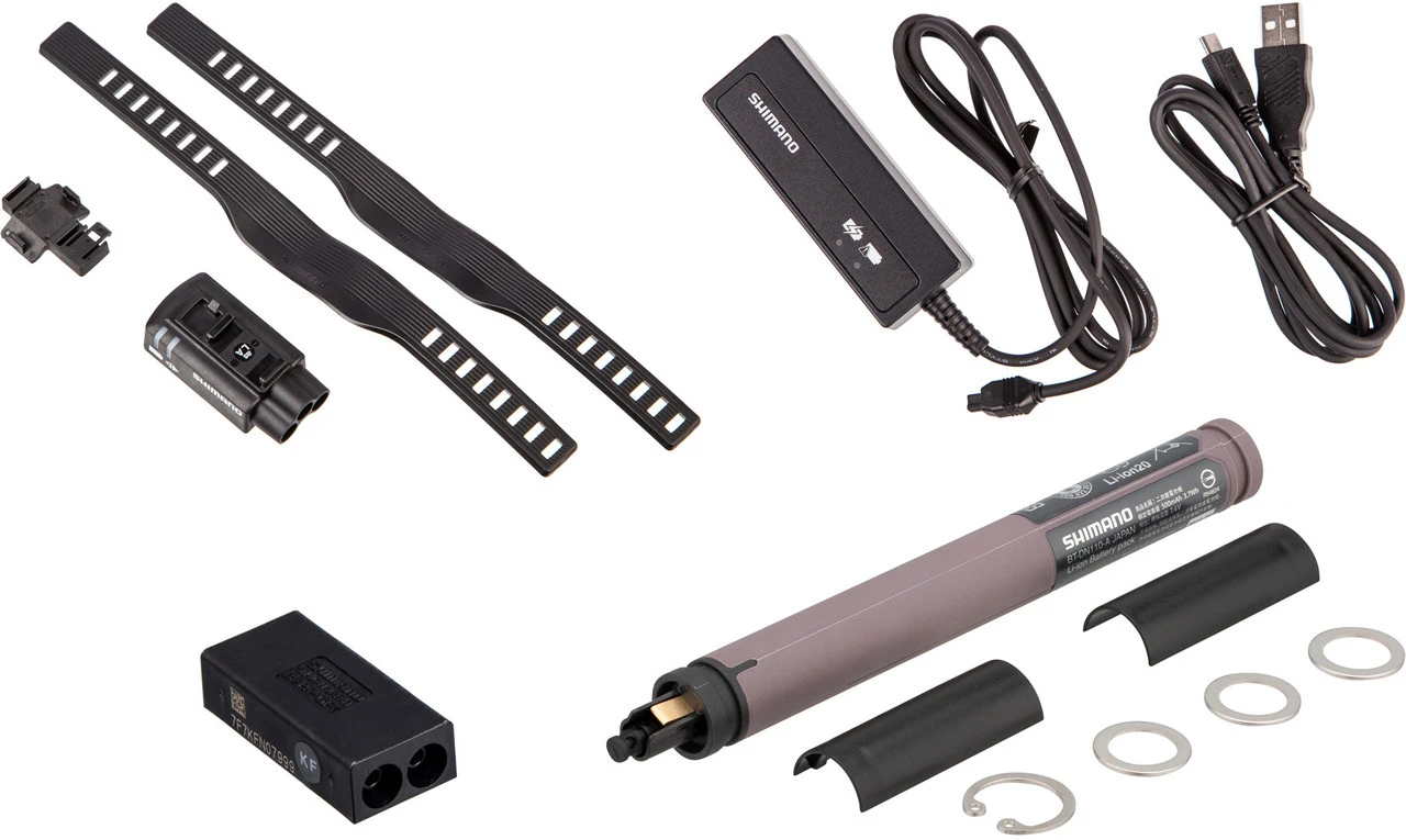 Innenlager: Shimano empfiehlt SM-BBR60 oder SM-BB72-41B Pressfit Hollowtech II.2 x Bremsscheibe RT-MT800 (140, 160 oder 180 mm)bei externem Verteiler (SM-EW90-A), Montage unter dem Vorbau: 6 x Stromkabel EW-SD50 (2 x zu STI, 1 x zu Verteilerdose SM-JC41 = Junction B, 1 x zu Umwerfer = FD, 1 x zu Schaltwerk = RD, 1 x zu Akku)*bei internem Verteiler (EW-RS910), Montage im Lenkerende: 5 x Stromkabel EW-SD50 (1 x zu STI, 1 x zu Verteilerdose SM-JC41 = Junction B, 1 x zu Umwerfer = FD, 1 x zu Schaltwerk = RD, 1 x zu Akku) + 1 x Y-Kabel-Verteiler EW-JC130 (Verbindung von EW-RS910 = Junction A mit STI und mit Verteilerdose SM-JC41)**bei internem Verteiler (EW-RS910), Montage im dafür vorbereiteten Rahmen: 5 x Stromkabel EW-SD50 (1 x zu EW-RS910 = Junction A, 1 x zu Verteilerdose SM-JC41 = Junction B, 1 x zu Umwerfer = FD, 1 x zu Schaltwerk = RD, 1 x zu Akku) + 1 x Y-Kabel-Verteiler EW-JC130 (Verbindung von EW-RS910 mit STI)***Gummitüllen zur internen Kabelverlegungggf. FM-auf-FM-Bremsadapter SM-MA-R160 D/D für 160-mm-Bremsscheibe bei 140-mm-FM-Rahmen bzw. SM-MA-R160 D/D für 180-mm-Bremsscheibe bei 160-mm-FM-RahmenOption: Zusatzbremshebel BL-RX812 zur In-Line-Montage am OberlenkerOption: Schrauben für 10/15/20/30/35 mm Rahmendurchmesser
