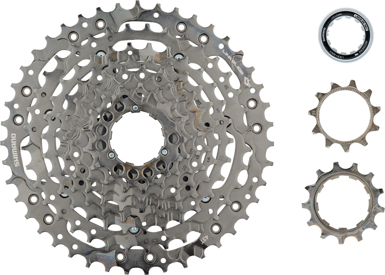 Abstufung:11-13-15-17-20-23-26-30-36-43 ZHerstellernummer:ECSLG40010143Lieferumfang:1 x Kassette Shimano CS-LG400-101 x Abschlussring Shimano