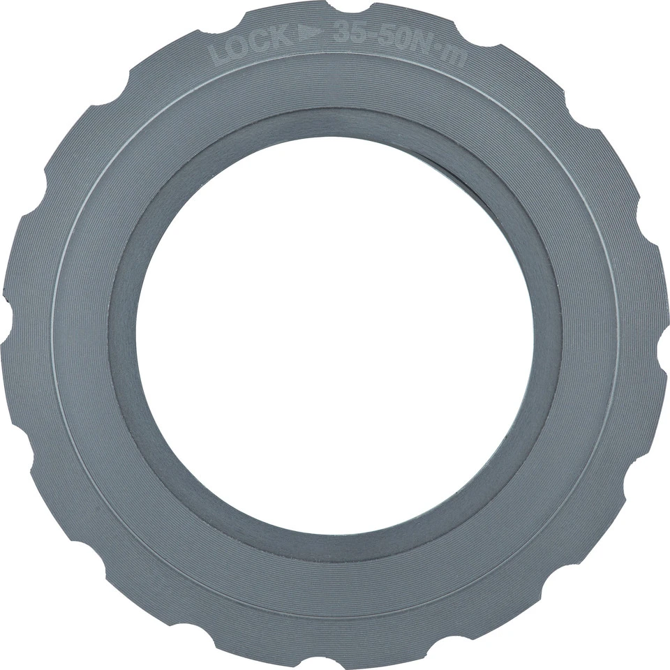 Der Lockring für die Shimano XTR FC-M9100-1 und FC-M9100-2 MTB-Kurbeln dient der Sicherung des (großen) Direktmontage-Kettenblatts auf der Kurbelachse. Er ist ebenso kompatibel mit FC-M9120-1 sowie FC-M9120-B2 und kann darüber hinaus mit den gleich konstruierten Kurbeln aus sämtlichen anderen Serien verwendet werden. Eine passende Distanzscheibe ist im Lieferumfang enthalten.