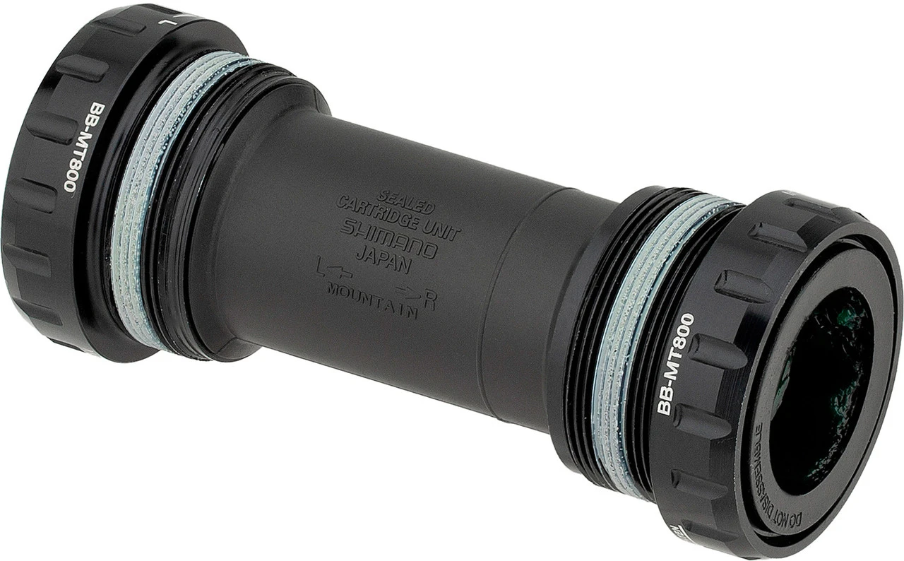 Shimano BB-MT800 ist ein BSA-Innenlager, das für XT, SLX, LX und gruppenlose Hollowtech II-kompatible Kurbeln mit 24 mm Achse empfohlen wird. Es passt in Tretlagergehäuse mit 68 oder 73 mm Breite. Die Lagerschalen bestehen aus leichtem Aluminium und wurden eloxiert.